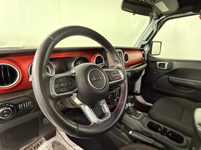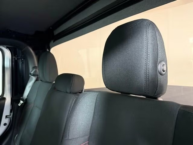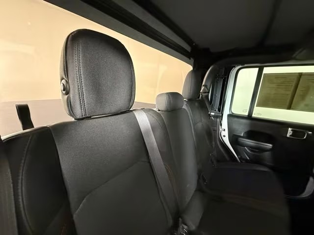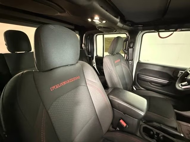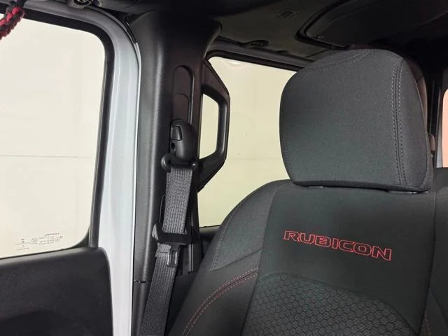 All Rubicon models include full‑time 4×4 via Jeep’s robust Rock‑Trac system, which offers a low‑range gear ratio around 4.0:1, locking front and rear differentials, a disconnecting front sway bar, and heavy‑duty off‑road components like Fox shocks. Tires are rugged, off‑road capable, and the suspension is tuned for both trail and trailhead. With payloads in the neighborhood of 1,100‑1,200 pounds and towing capacity up to 7,000 pounds, it handles hauling and trail towing with ease.