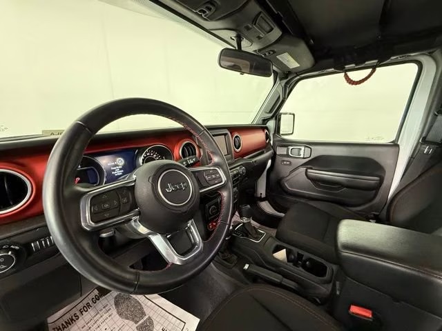 The 2021 Jeep Gladiator Rubicon is a rugged midsize pickup built for serious off‑road performance, without giving up utility or comfort. It features a standard 3.6‑liter Pentastar V6 engine delivering about 285 horsepower and 260 lb‑feet of torque, with the optional 3.0‑liter EcoDiesel V6 (on automatic‑only models) boosting torque significantly. Power is routed through either a 6‑speed manual or an 8‑speed automatic transmission, depending on configuration.