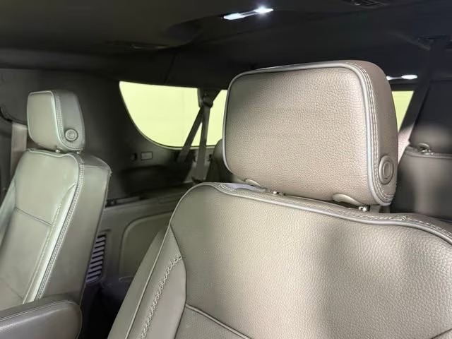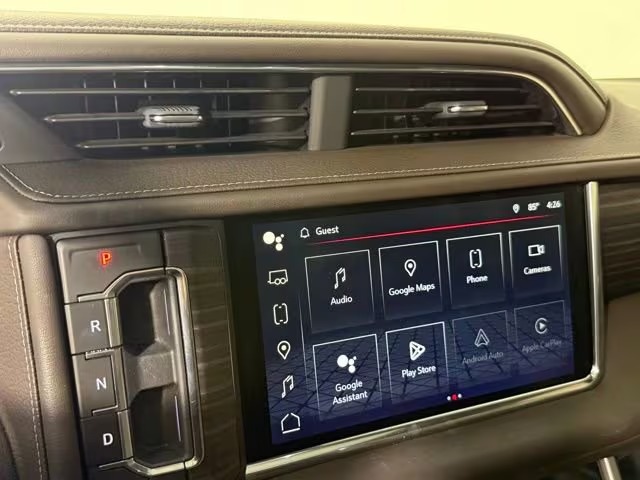 Inside, the Denali trim pulls out all the stops. Seating for seven is standard via second‑row captain’s chairs (or bench for eight), with luxury touches like hand‑stitched leather, wood‑grain trim, heated and ventilated front seats, heated second‑row seats, and a heated leather‑wrapped steering wheel. Technology includes a premium infotainment system with Google‑based interface, large touchscreen display, a digital gauge cluster, heads‑up display, and a Bose sound system that fills the cabin with clear audio.